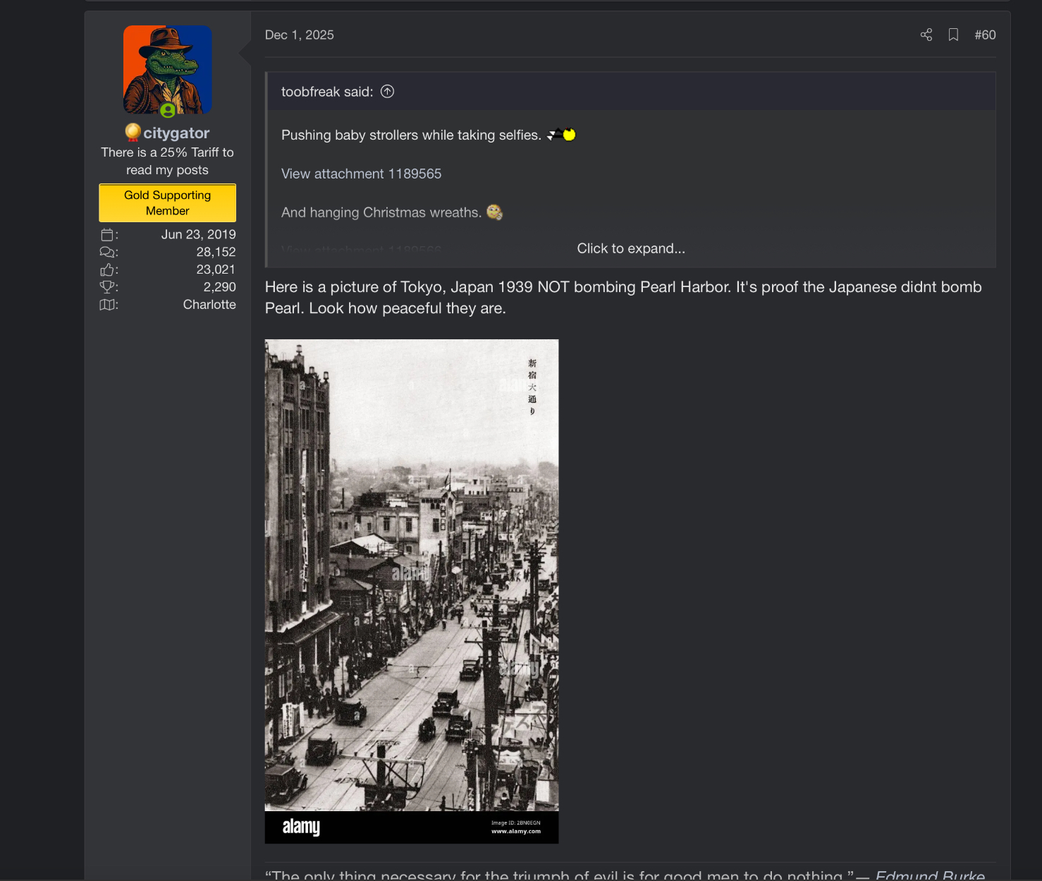 In response i posted a picture of Japanese on Dec 7th 1941 NOT bombing Pearl Harbor sarcastically pointing out this must be proof the Japanese didnt bomb Pearl.