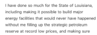 He saying he reduced the price of Oil and that is why they have more energy facilities...