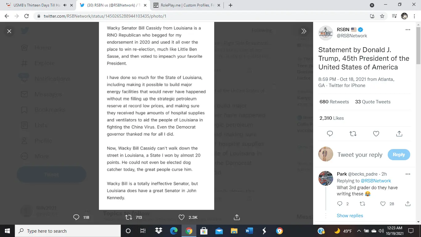 Trump put everything on the line for US citizens and everyone else should just shut up.I was just explaining why Trump called Cassidy to the carpet over his betrayal.