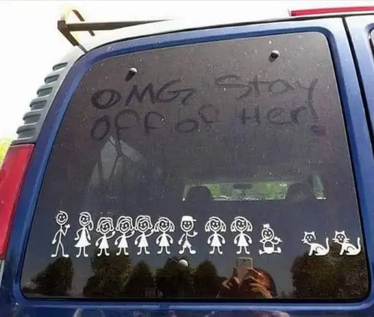 What if the woman doesn't want the man to stay away?haha, this is what happens when you put stickers on your vehicle