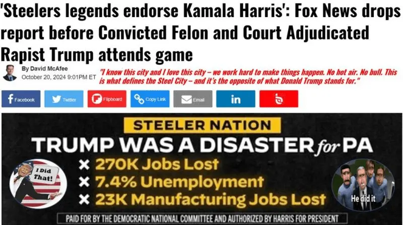'Steelers legends endorse Kamala Harris': Fox News drops report before Trump attends game