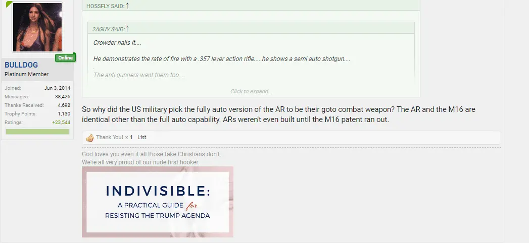 You mean this one? As I said. I have been claiming the auto / select fire capability was the only difference all along. You were the doofus who said all 223 rifles were the same. I as wrong about which came first though. The AR designation as changed to M16 for military use.View attachment 179103