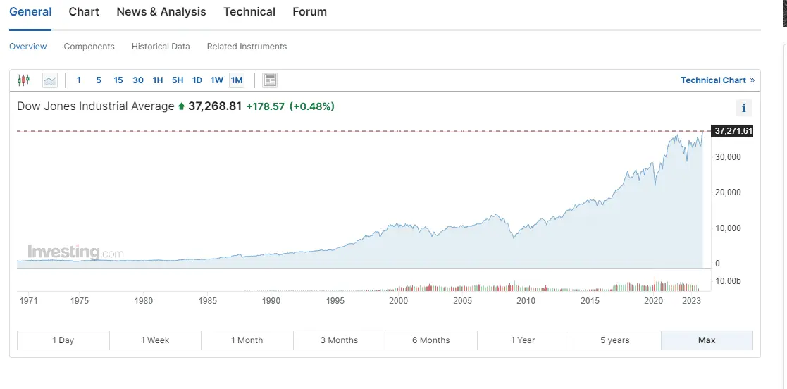 NYSE and DOW keep charts of their pricing a going back many years