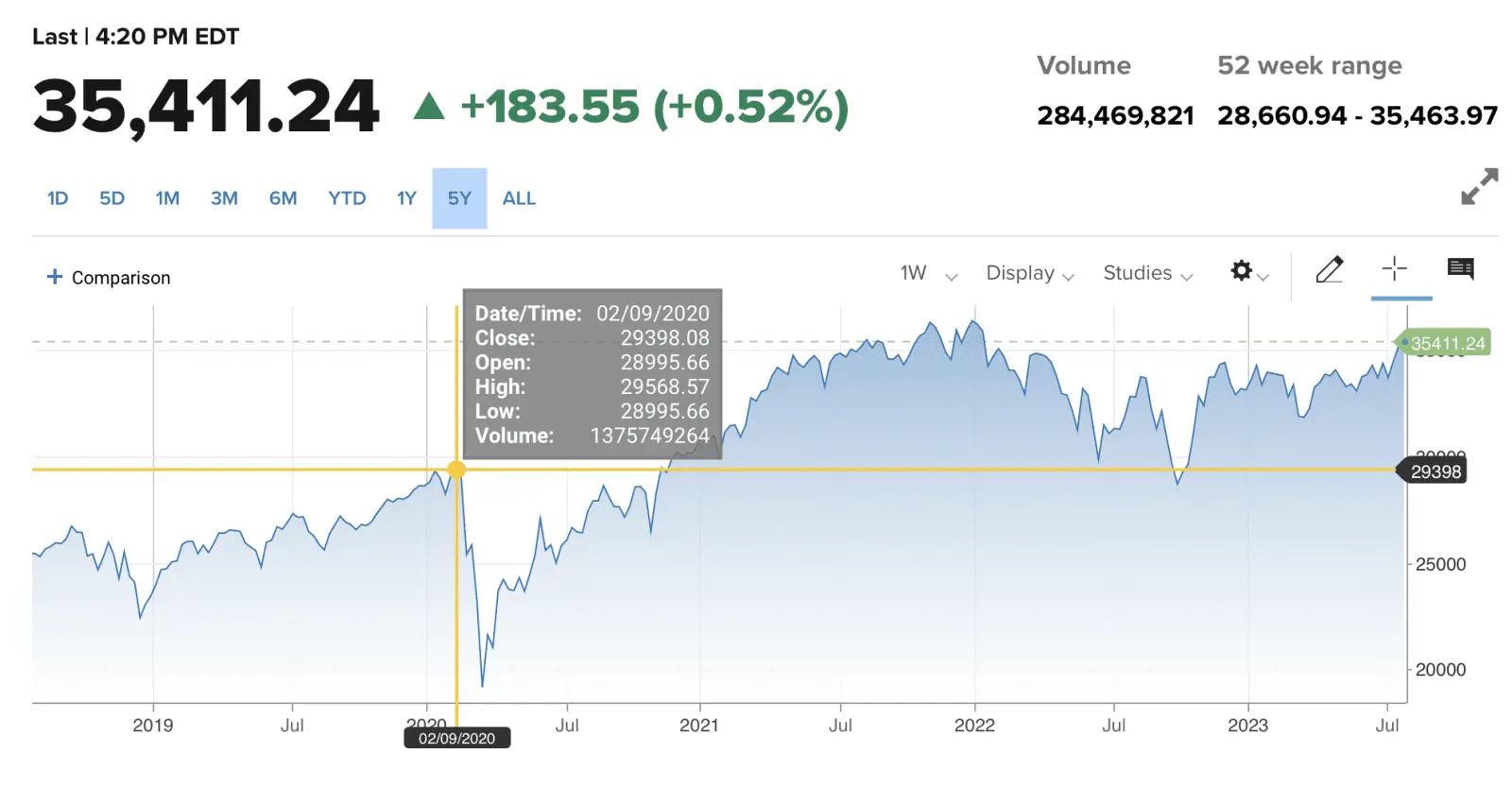 At the peak, YES, the Highest Dow in the trump Presidency, the DOW closed at just under 31,100, (second Chart ) and just under 30,000 pre Covid (1st Chart)