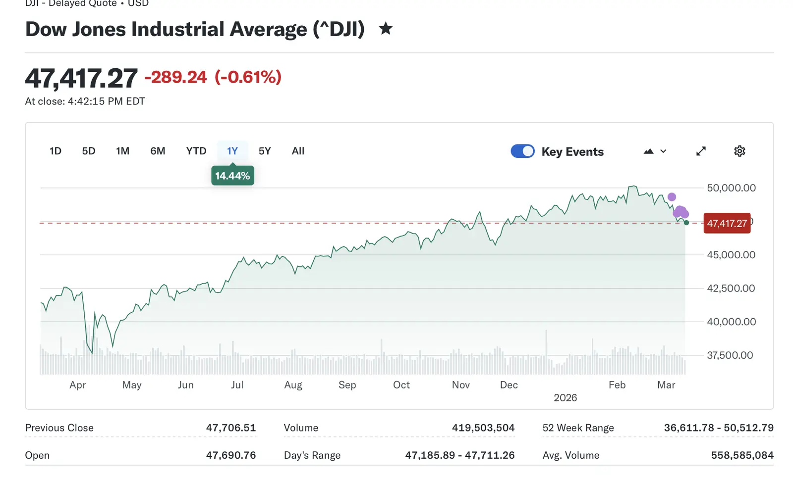 I never heard from you when the DOW was 50,000 for some reason. And of course the true measure of Trump is to start the clock the day after Election Day, 2024, as the market looks forward. It was 43,729 then. Here is my thread when it hit 50K. Up at full 17% from election day in barely a year. Incredible. Yet not one single post in that thread from you. Were you out of the country ? O....M....G....DJIA Hits 50,000 Another huge win for TrumpJust posting the FACTS.