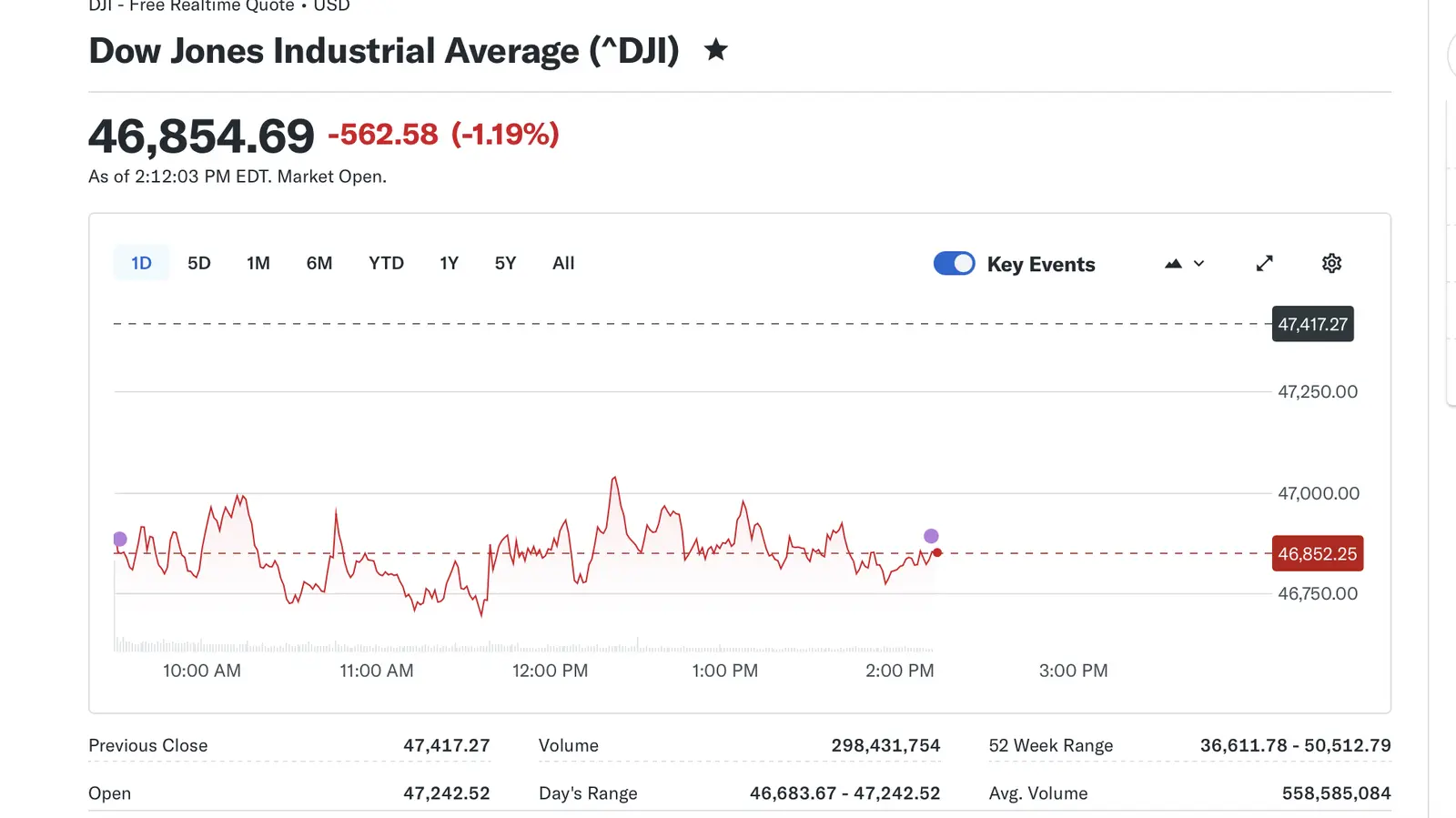 DOW closes today at 46,677.85