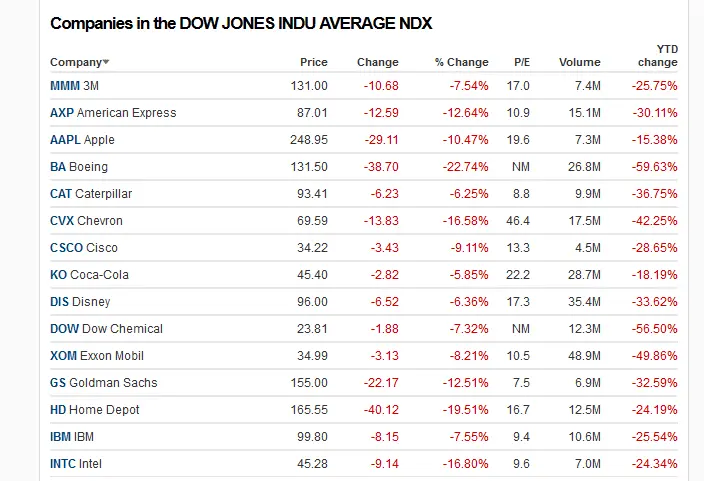 Stocks take worst losses since 1987 crash as Dow plunges nearly 3,000 points