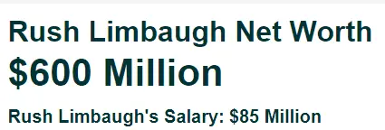 Rush Limbaugh was an American conservative radio host, political commentator, author, media personality, and former television show host who had a net worth of $600 million at the time of his death.