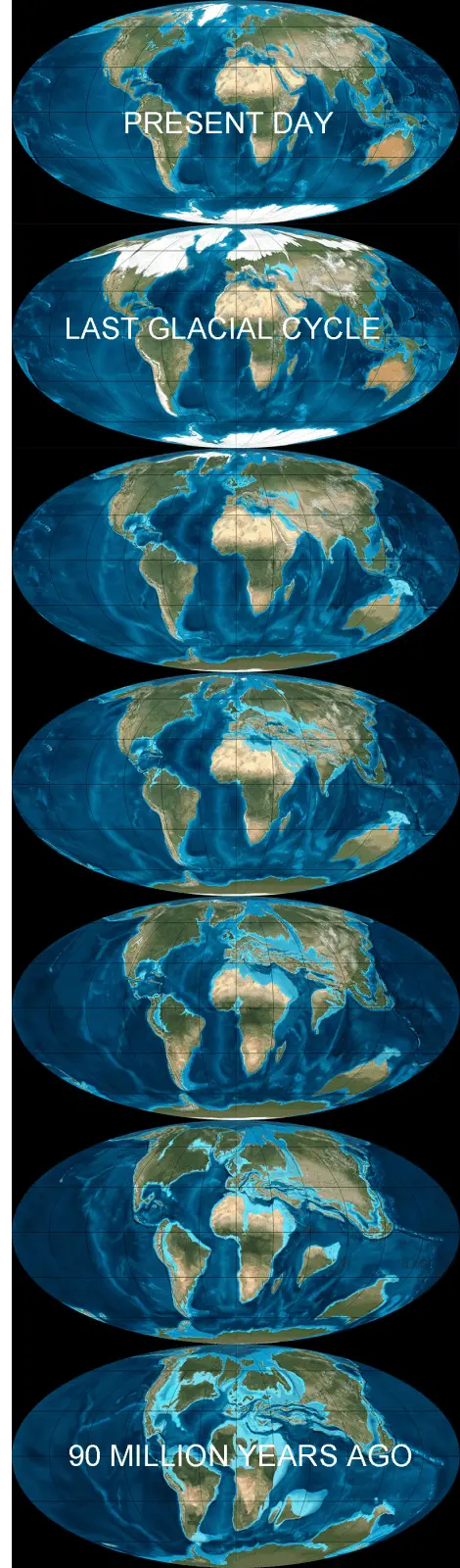 The point is the land mass distribution and locations aren’t much different today than they were 50 million years ago.Not sure what you point is? Don't forget, Central America was only formed about 3 million years ago. Before that the Atlantic and Pacific were connected.
