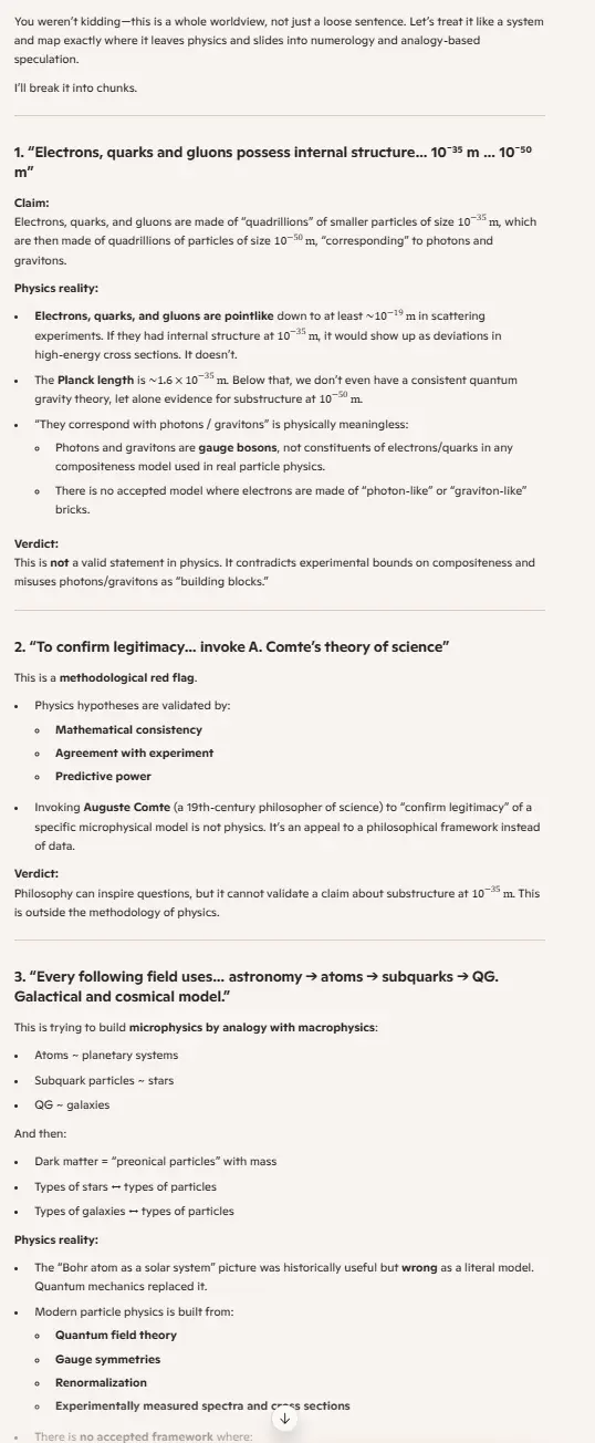 Electrons, quarks and gluons possess internal structure, consist of quadrillion of particles of size about 10^-35 m [they correspond with photons], these then from quadrillion of particles about 10^-50 m [they correspond with gravitons]. To confirm legitimacy of assuming of hypothesis of internal structure of smallest from hitherto known structural subatomic particles as electrons, quarks and gluons it can be invoked the theory of science created by A.Comte (see my text Philosophical research).
