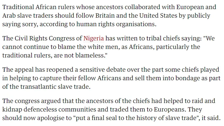 Yes all Races have indulged in intra-tribal wars where they sold their fellow brethren into Slavery. Yes. Those African tribes did the same thing we Caucasoids did to each other. So you look like real, aimless, by trying to bring that up.