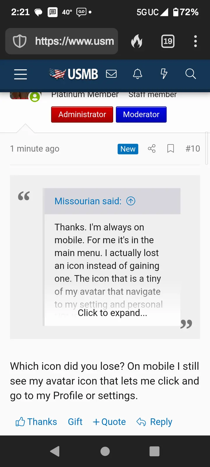 Thanks. I'm always on mobile. For me it's in the main menu. I actually lost an icon instead of gaining one. The icon that is a tiny of my avatar that navigate to my setting and personal USMB page is gone.top right corner near search