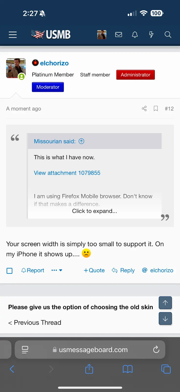 Ah. Thanks. No big deal. The drop-down menu is fine. I think the thunderbolt is new and pushed it off.Your screen width is simply too small to support it. On my iPhone it shows up....