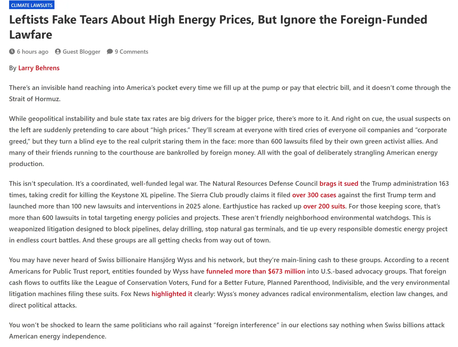 Leftists Fake Tears About High Energy Prices, But Ignore the Foreign-Funded Lawfare - Watts Up With That?