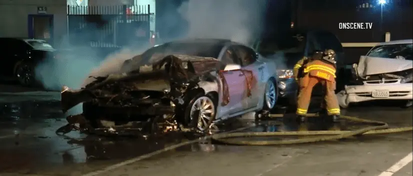 Tesla Model S bursts into flames twice in one day, sparking an investigation.
