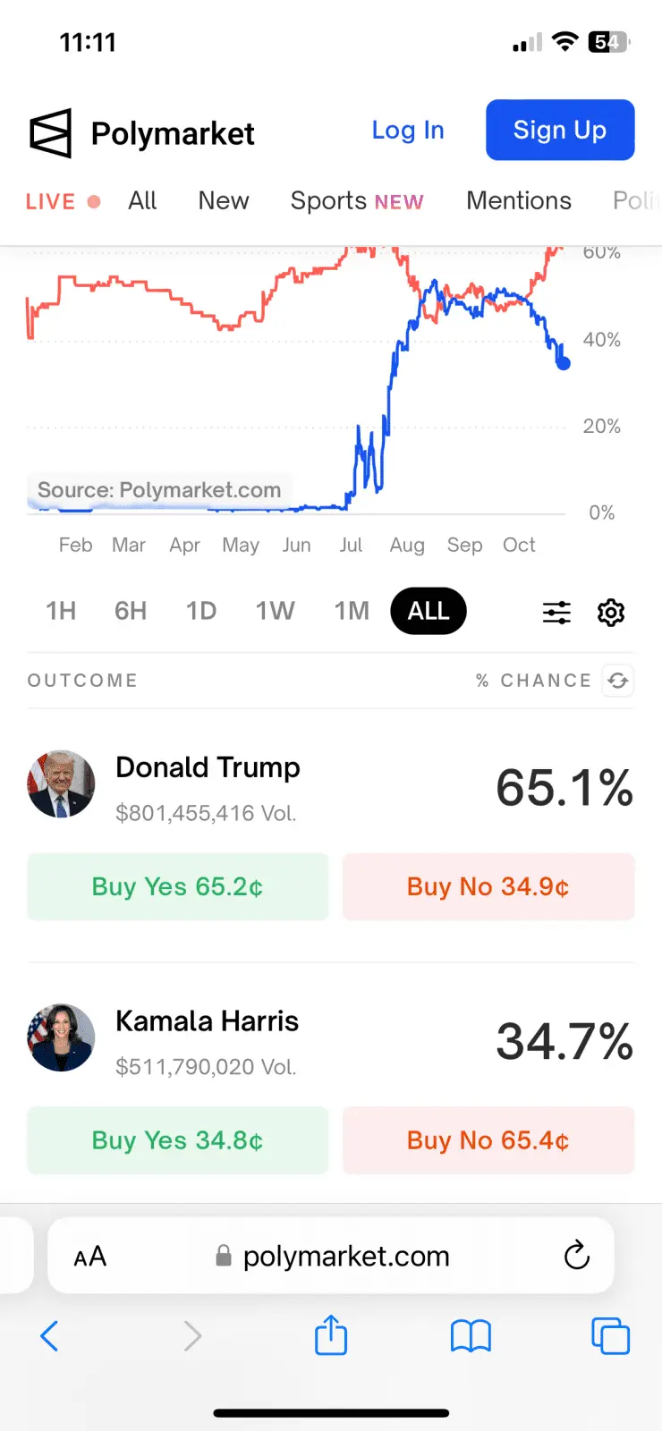 And no poly market is not corrupted. Harris was comfortably ahead on poly in August. She just has been outworked and has done a bad job with interviews and campaign speeches in the past month