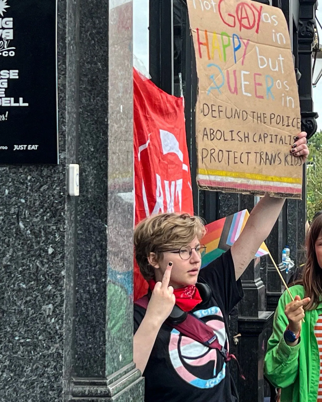 Note the self inflicted mutilation on the arm of your cultist who demands society bow to her.