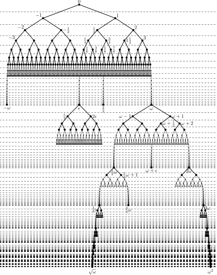 To address these woeful misrepresentations, the mathematicians Georg Cantor and John von Neumann developed "surreal" sets. This is what a surreal number tree looks like: