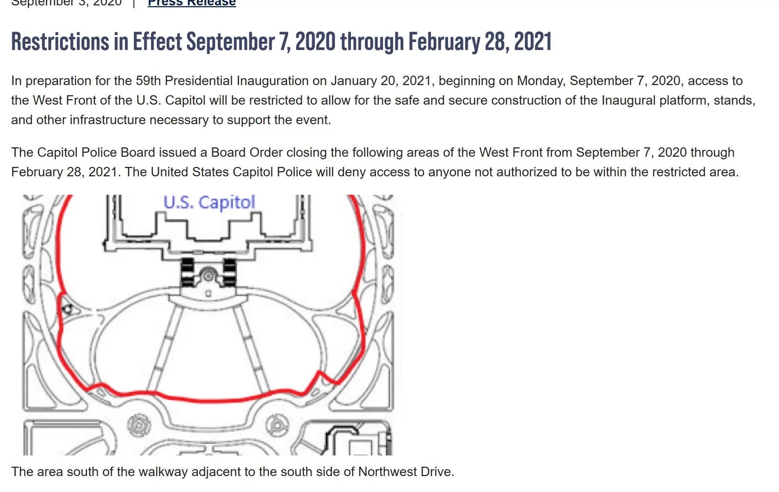 In preparation for the 59th Presidential Inauguration on January 20, 2021, beginning on Monday, September 7, 2020, access to the West Front of the U.S. Capitol will be restricted to allow for the safe and secure construction of the Inaugural platform, stands, and other infrastructure necessary...www.uscp.gov