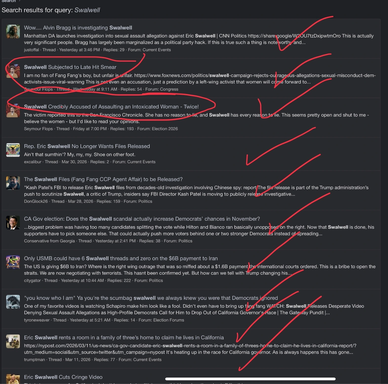 Well . . . welcome to USMB.You started 2 of them. There are a few more without “Swalwell” in the title besides these. But there are a lot of threads. That’s all I’m saying.
