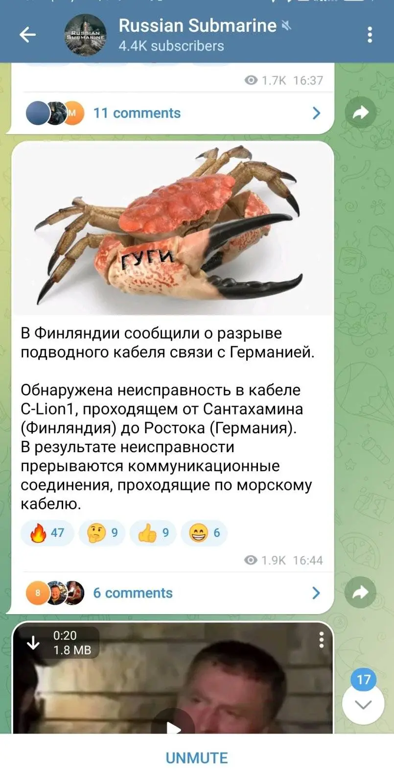 Just for lulz. Russia telegram channel "Russian Submarine" comment this news with the picture of a crab with word GUGI on its arm.