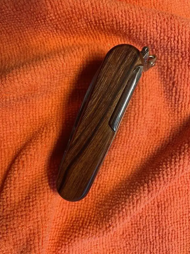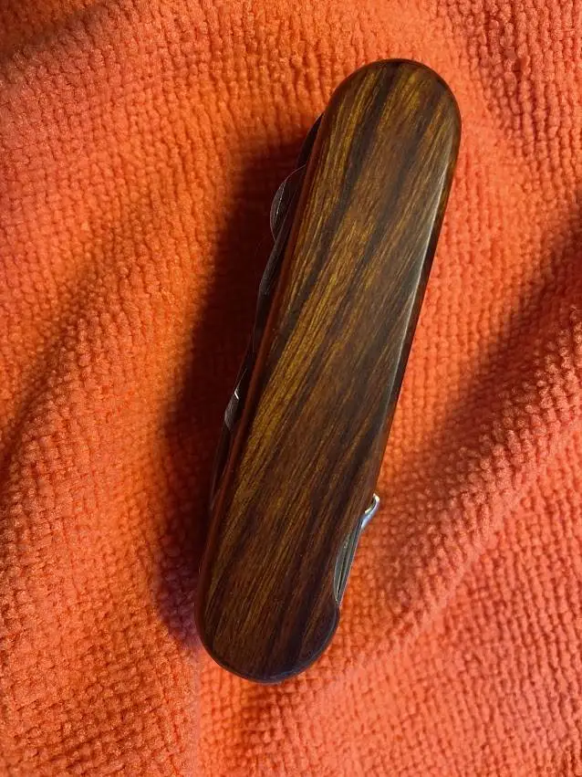 I put it away and forgot about it until recently and began looking for replacement scales and a replacement for the missing toothpick. I quickly discovered mine is a Wenger, the original Swiss Army Knife maker. Victorinox bought them out many moons ago and has since stopped production of the Wenger line. Replacement toothpicks are non existent and only one company that I'm familiar with makes brand new scales. The scales are custom so they ain't cheap, typically around $50 for a set. SAK who sells them had had a set of Desert Ironwood ones on sale so I bought those.
