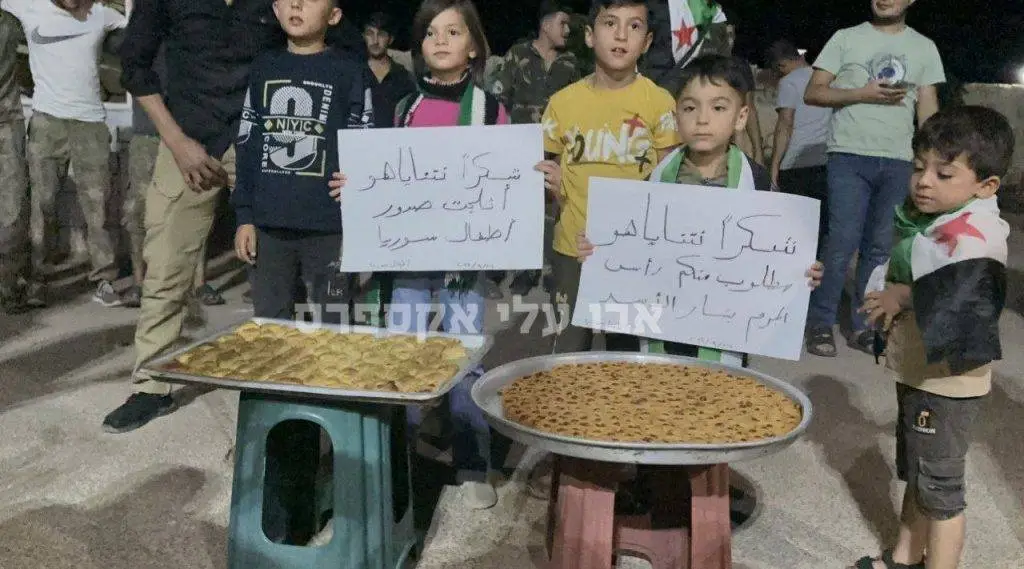 On the signs it says: Thank you Netanyahu. Now the head of the criminal Bashar Assad. Thank you Netanyahu. Warmed the hearts of Syrian children. AbuAliExpress