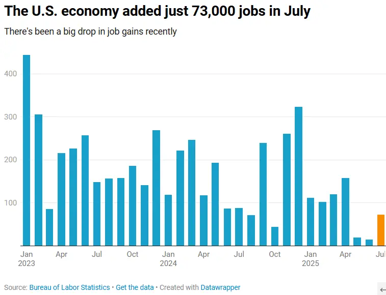 Just 73,000 jobs created in July, and employment in May and June was 258,000 lower than previously reported