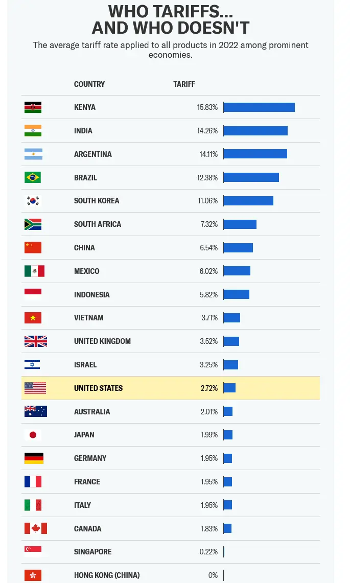 MAGAts are simple, granted. Look at all the shit MAGAts are giving Canada when its tariffs are around half yours. 'Average' tariffs mean nothing when it comes to actual trade.grift.....lol, dude look at the chart, most of our so called friends charge more for OUR goods then THEIR goods so we are being boned