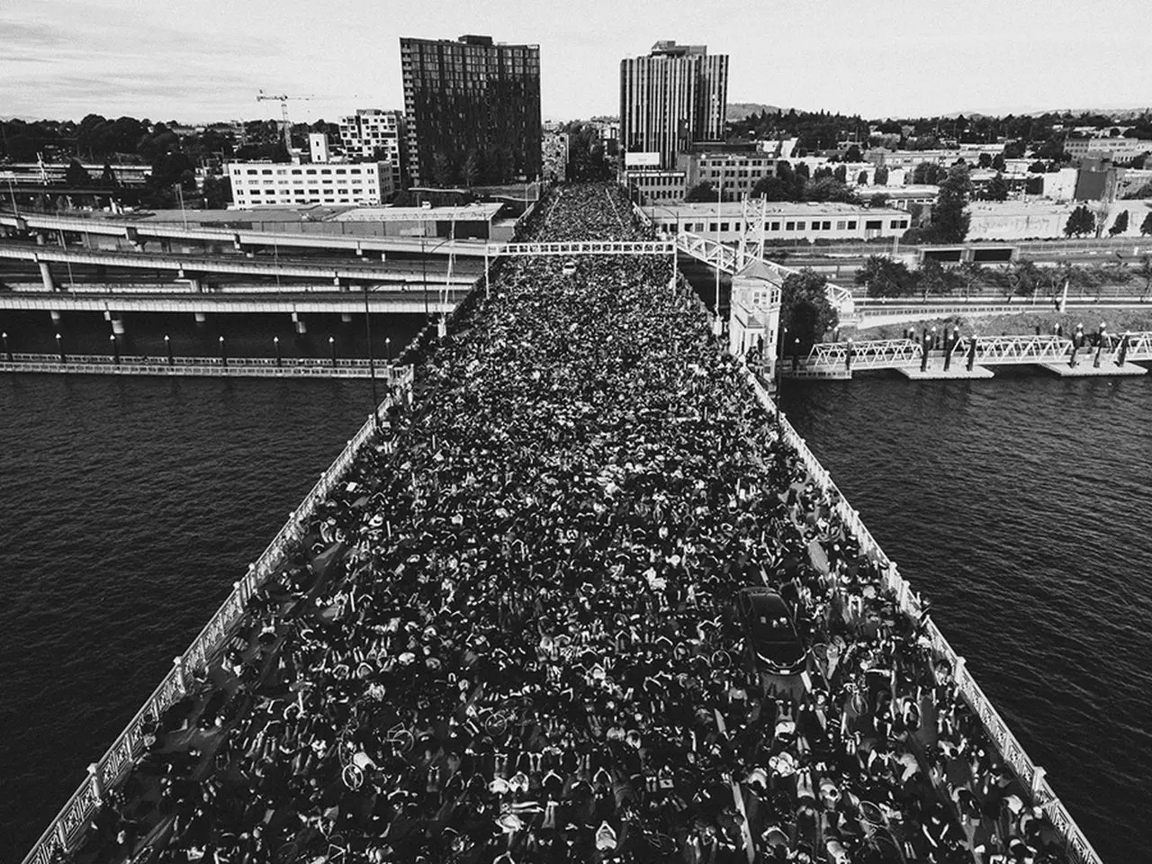 I bet 3/4rs of those people had to get to a lawn and scrape off the feces they stepped on, on that bridge..