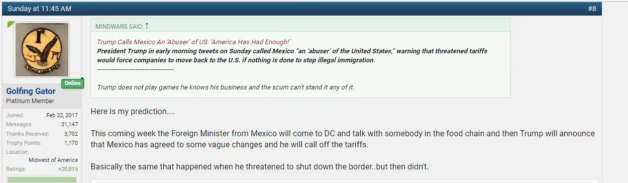 I am pleased to inform you that The United States of America has reached a signed agreement with Mexico. The Tariffs scheduled to be implemented by the U.S. on Monday, against Mexico, are hereby indefinitely suspended. Mexico, in turn, has agreed to take strong measures to....
