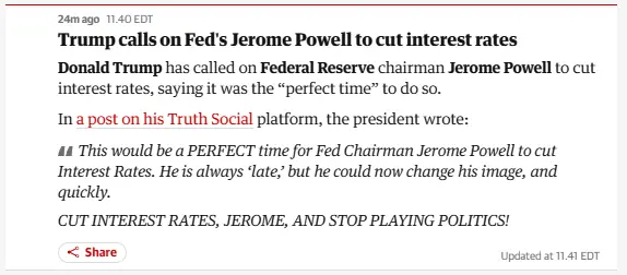 Cut interest rates when I say so and stop doing your job". (this is similar to how Trump treated Fauci).