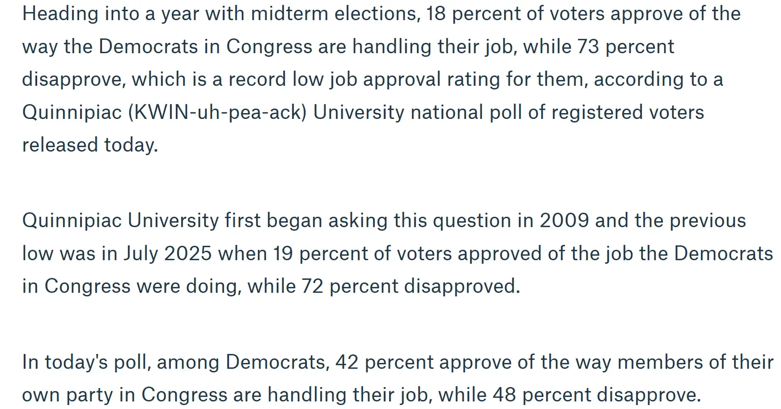 The Whiner's plummeting numbers, in which his inflationary tariffmania plays a large part, is alienating Independents in large numbers and, with their jobs on the line in November, Congressional Republicans refuse to kowtow.In a polling average from Decision Desk HQ, Trump’s approval rating as of Friday sits at 41.7 percent and his disapproval rating is at 56.3 percent.