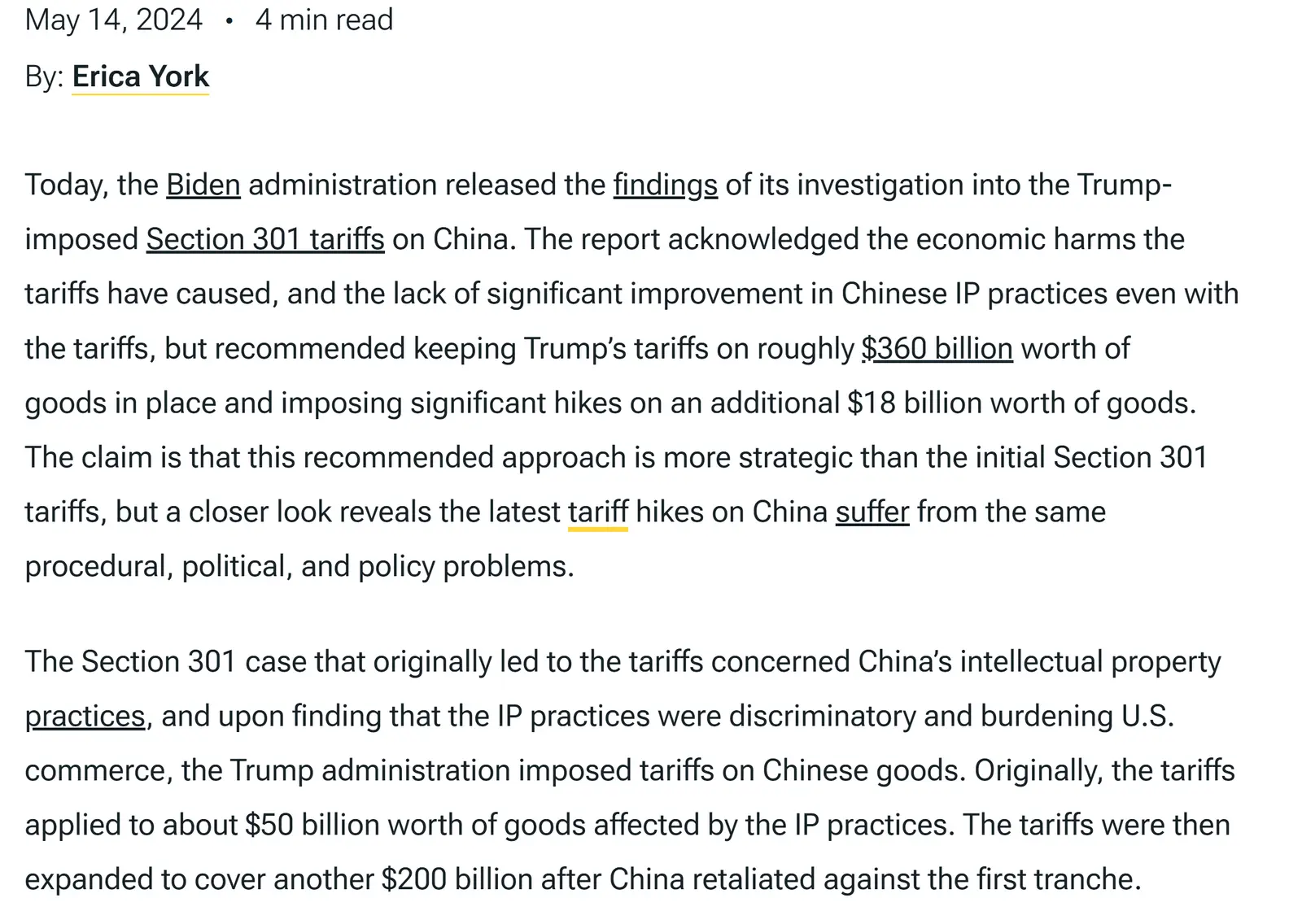 Biden didn't simply waive his arms and impose "very steep tariffs" on China.