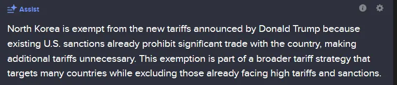 There were no tariffs for North Korea. Or Russia. Or Belarus.