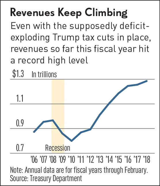 In other words, in a fiscal year that's seven months old (four of which were after the tax cuts went into effect), federal revenues are higher than ever.
