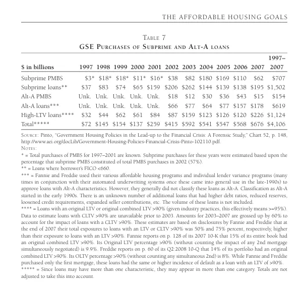 Lots of subprime loans bought under Clinton's no subprime rules. Weird.