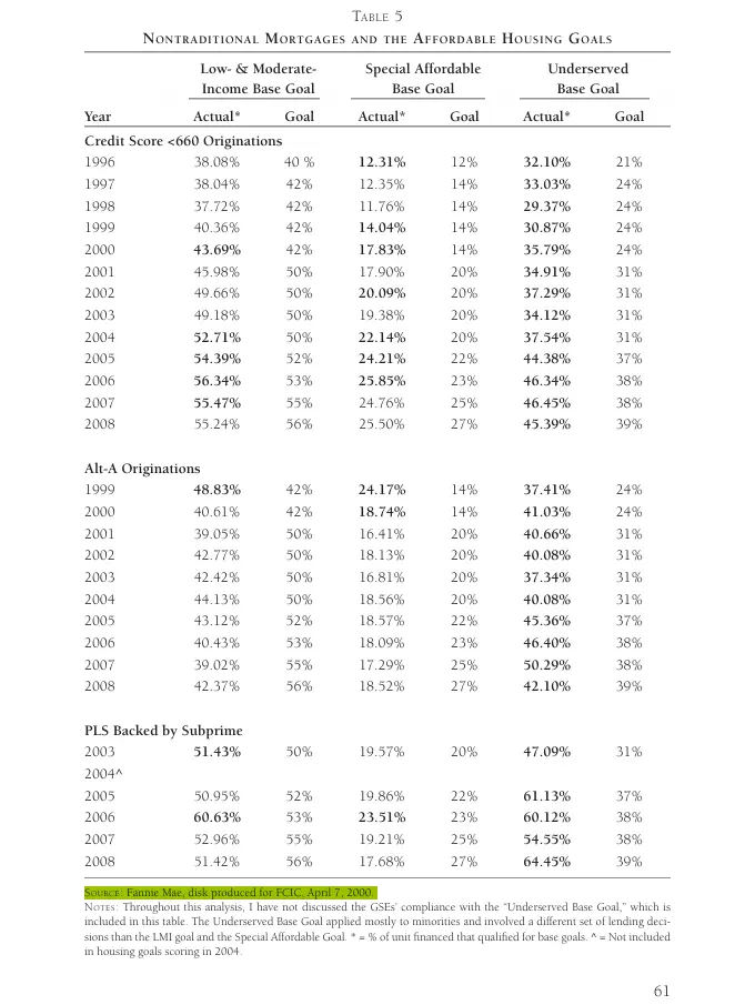You want to sell us that the crash happened in 2004? Fake story. It was in 2007/08“We also studied at length how the Department of Housing and Urban Development’s (HUD’s) affordable housing goals for the GSEs affected their investment in risky mortgages. Based on the evidence and interviews with dozens of individuals involved in this subject area, we determined these goals only contributed marginally to Fannie’s and Freddie’s participation in those mortgages.