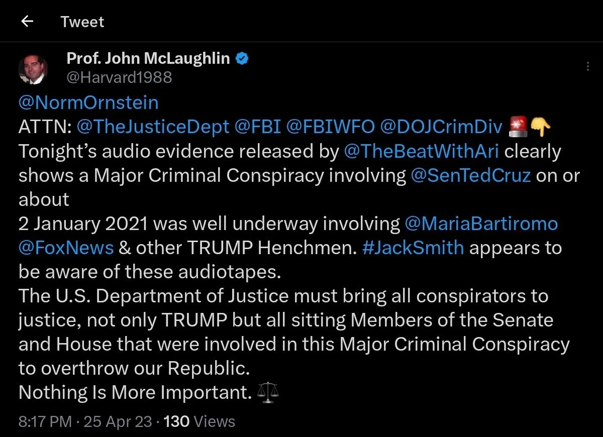 The Jan. 2, 2021, recording, provided to The Washington Post by Grossberg’s attorney, features Cruz debriefing Grossberg and Fox Business host Maria Bartiromo on the creation of an electoral commission that would result from the denial of the certification of Joe Biden’s victory on Jan. 6, 2021.