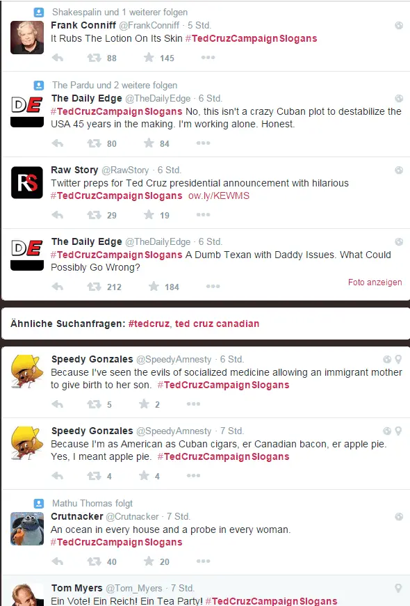 Tweets about TedCruzCampaignSlogans hashtag on Twitter