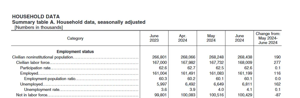 As of July 2024, the unemployment rate is 4.1% with a total labor force of 168 million.