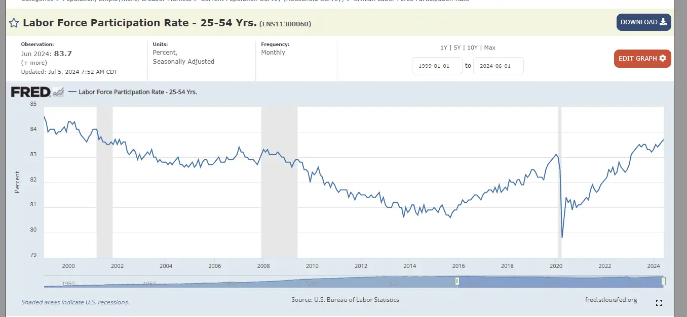 When you look at the core working age LFPR it is at its highest point since 2001.