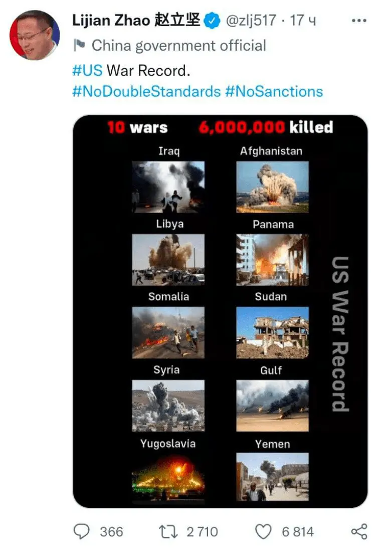 Such a tweet was posted by a Chinese politician and Deputy Director of the Information Department of the Chinese Foreign Ministry Zhao Lijian...