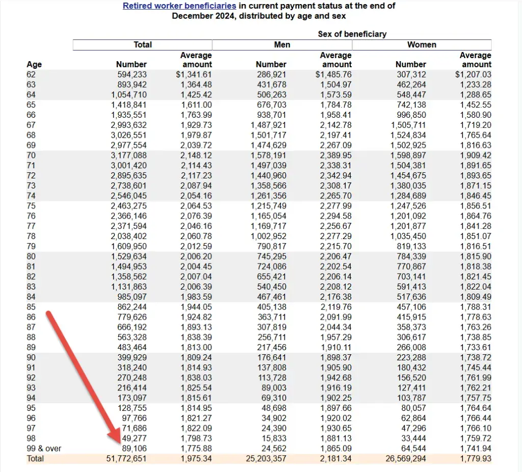 But let's be honest. Musks/Trumps claims (or inuendo) that there are millions and millions of SS retirement beneficiaries over 100+ receiving benefits is a flat out lie.