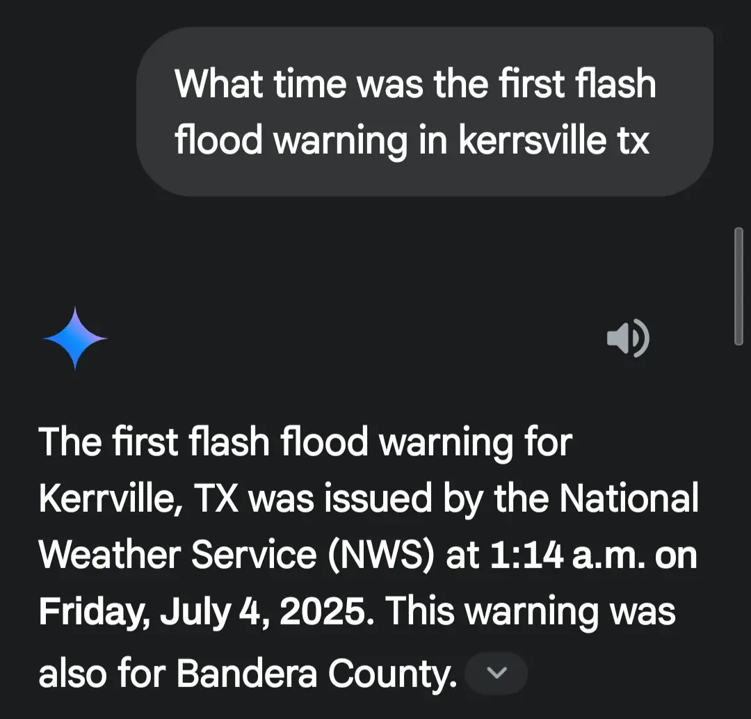 I see you still fail to bring an NWS timeline for warnings during previous flash floods so we can compare.Still trying to convince yourself that Trump doesn't shovel you bullshit everyday?