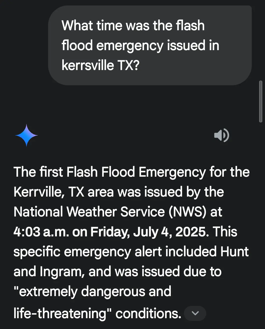 Still trying to convince yourself that Trump doesn't shovel you bullshit everyday?Seems to me everything worked as usual. Unless all those saying they dropped the ball can bring data showing timelines of previous flash flood warnings.