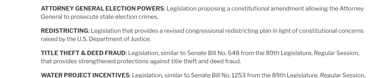 The Governor of Texas is the only one who can call a special session.Dembot that’s a list of things he wanted addressed at the special session