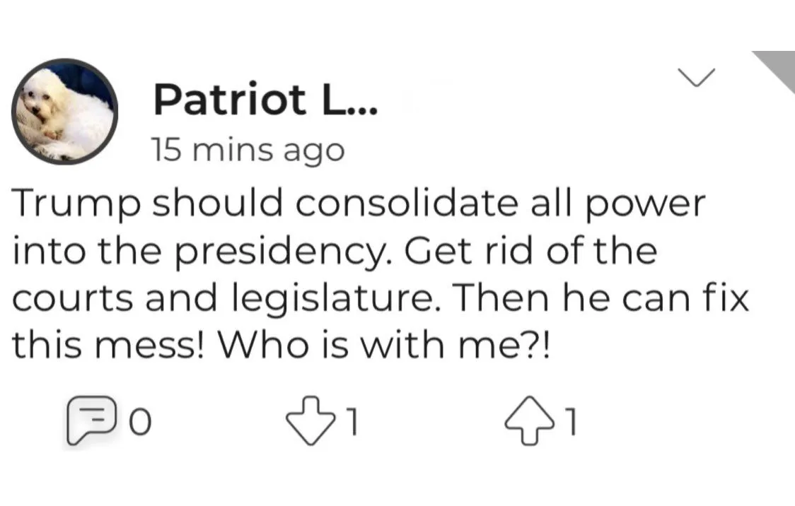 You’re all living in a fantasyYour right, but our justices might.Texas isn’t going to do shit to overturn the results of the “most secure election” in modern historyDonald J Trump has taken the Constitution of the United States, dampened it ever so slightly so that its still pliable, grabbed it tightly with both hands and continues to slowly tighten it around the proverbial neck of the Democratic party.There was no widespread fraud, you ******* simpleton. No judge has seen credible evidence. No state attorney general that Trump lost has agreed.great.If you bootlickers really think that the SCOTUS is going to overrule state law to turn over the election process to the state legislatures, you’re out of your ******* minds
