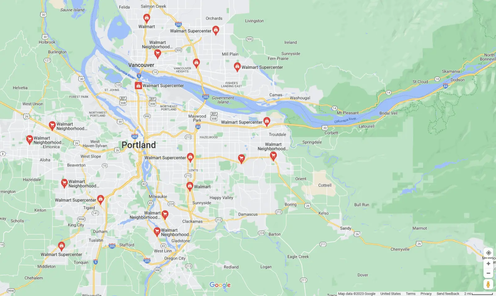 And yet news reports contradict your mapGoogle maps...wal marts in portland.