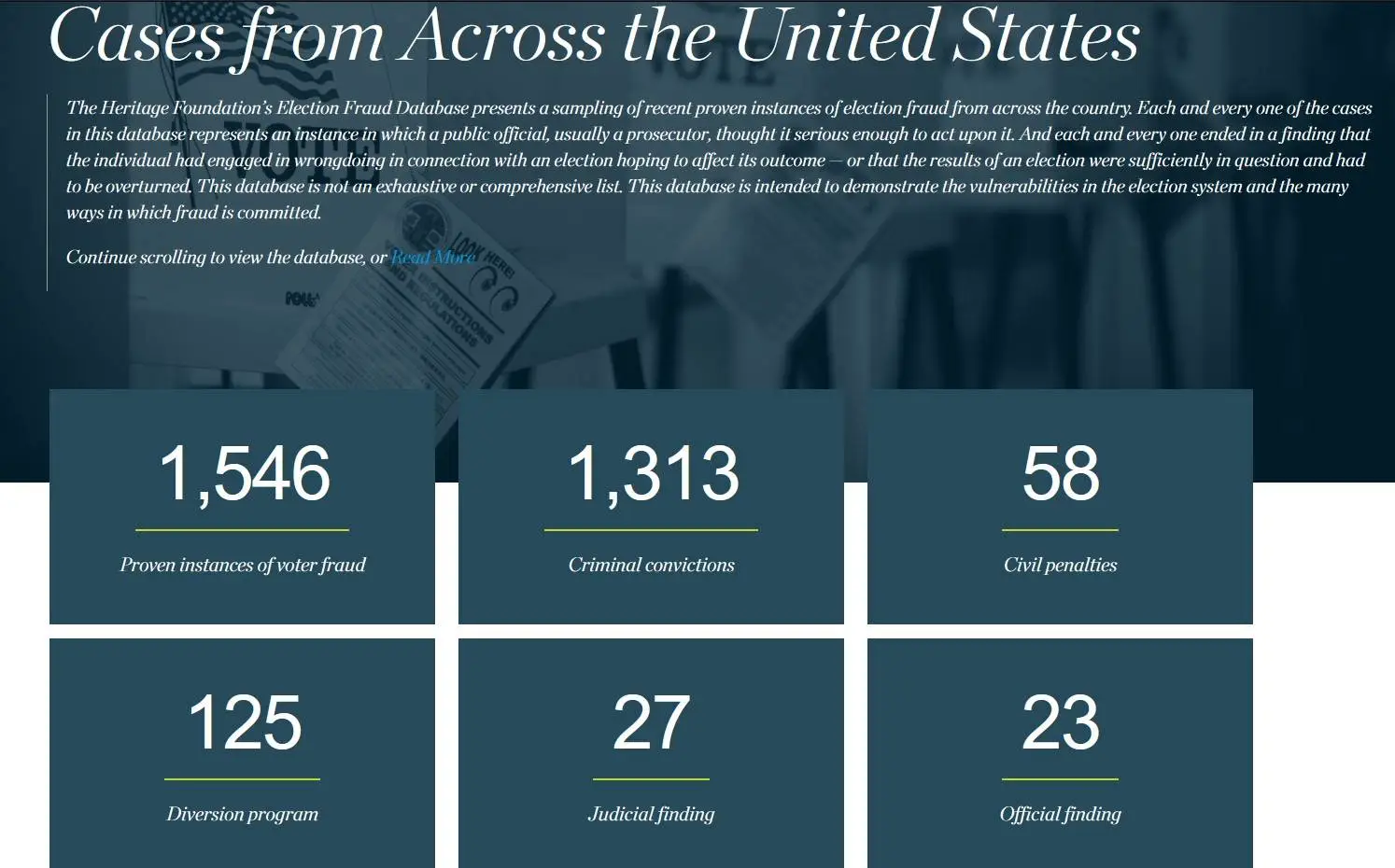 To be clear, this database is not an exhaustive or comprehensive list of all election fraud in the states. It does not capture all cases and certainly does not capture reported instances or allegations of election fraud, some of which may be meritorious, some not, that are not investigated or prosecuted. Because of vulnerabilities that exist in state’s election laws, election fraud is relatively easy to commit and difficult to detect after the fact. Moreover, some public officials appear to be unconcerned with election fraud and fail to pursue cases that are reported to them. It is a general truism that you don’t find what you don’t look for.